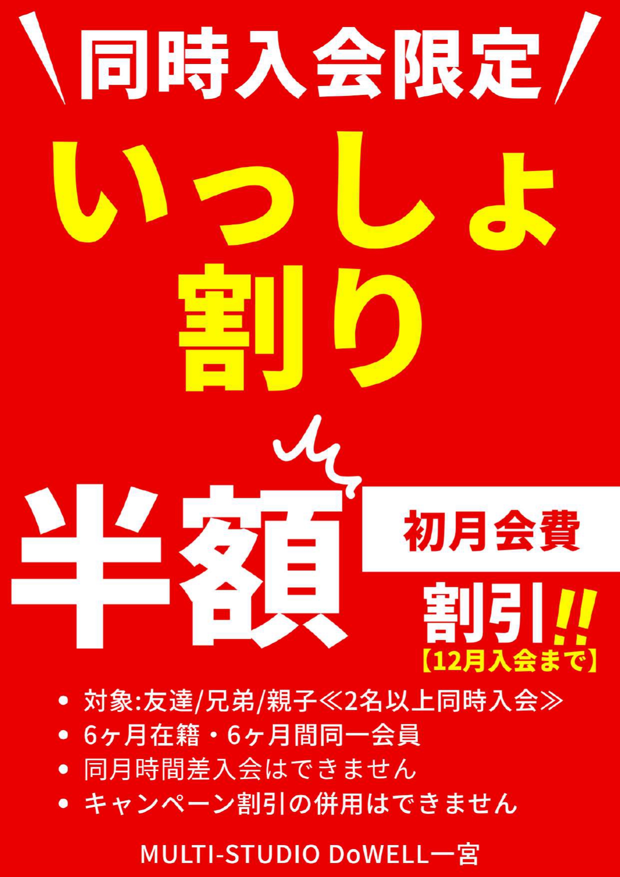 お友達やご家族と一緒に入会すると、初月会費が半額!